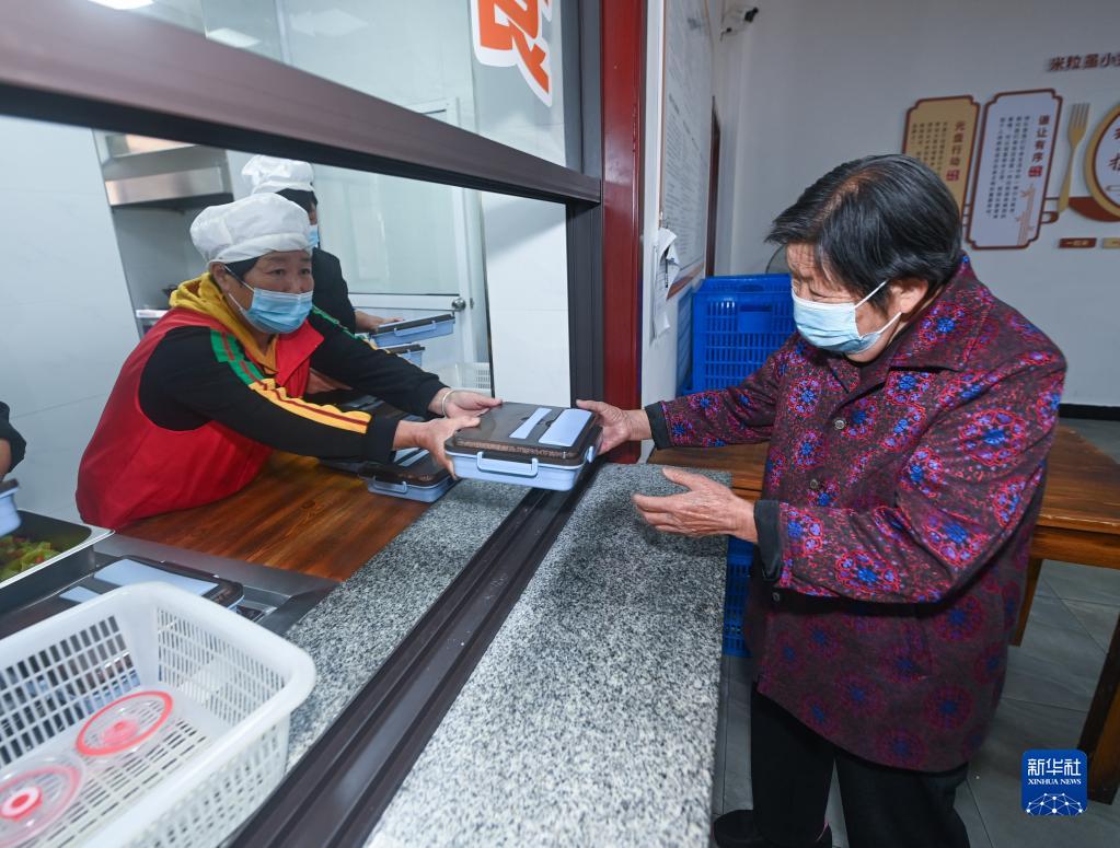 10月25日,在杭州市臨安區昌化鎮居家養老服務(wù)中心老年食堂,工作人員給老人遞上配好的午餐。