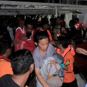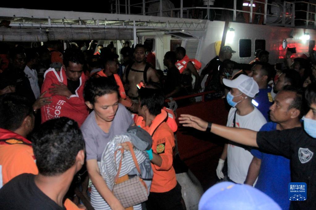 10月24日,救援人員在印度尼西亞?wèn)|努沙登加拉省疏散客輪乘客。