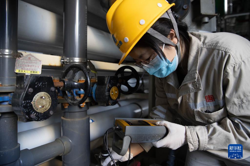 10月24日,在大唐綏化熱電有限公司供熱車(chē)間內,化驗員王蕾在進(jìn)行水質(zhì)檢測。