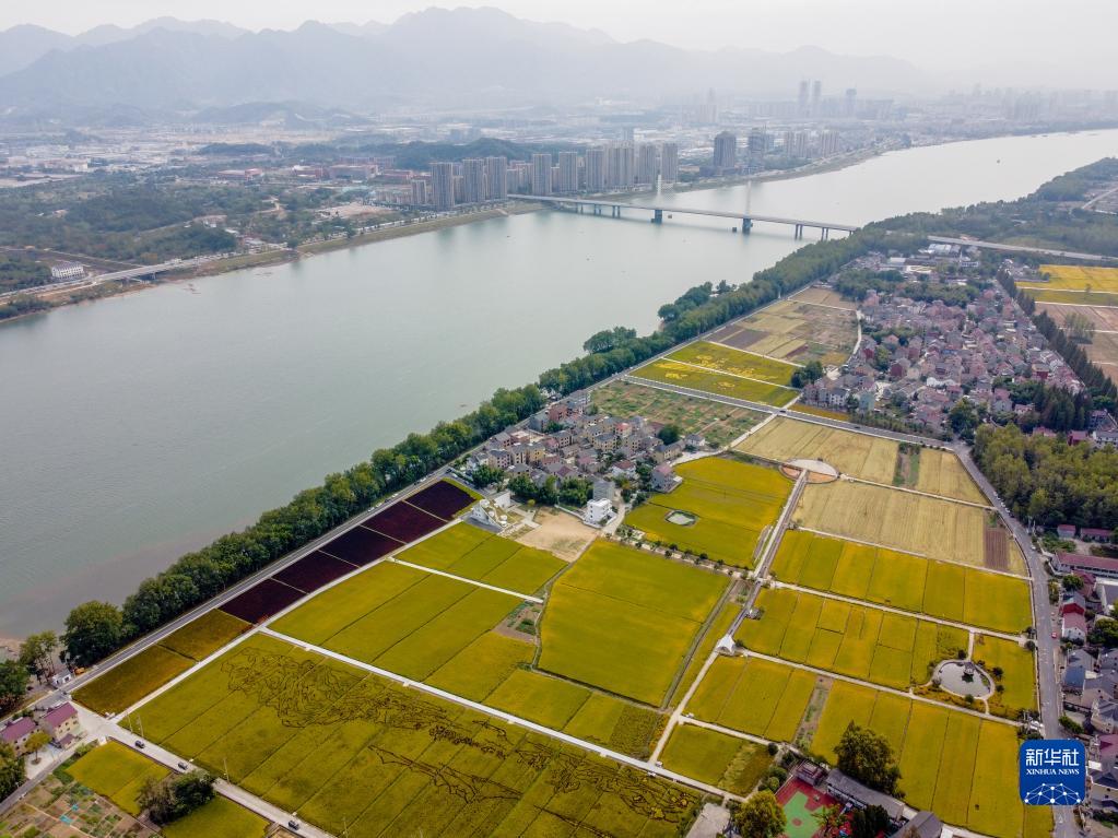 這是10月25日拍攝的桐廬縣桐君街道梅蓉村富春江邊的稻田(無(wú)人機照片)。