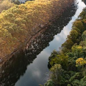 這是貴陽(yáng)市花溪國家城市濕地公園黃金大道風(fēng)景(10月25日攝,無(wú)人機照片)。