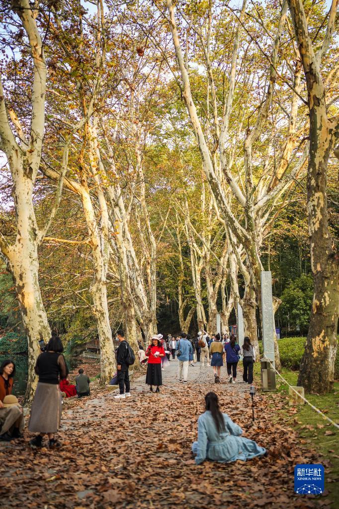 10月25日,市民在貴陽(yáng)市花溪國家城市濕地公園黃金大道觀(guān)賞游玩。