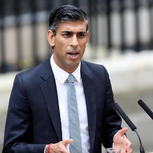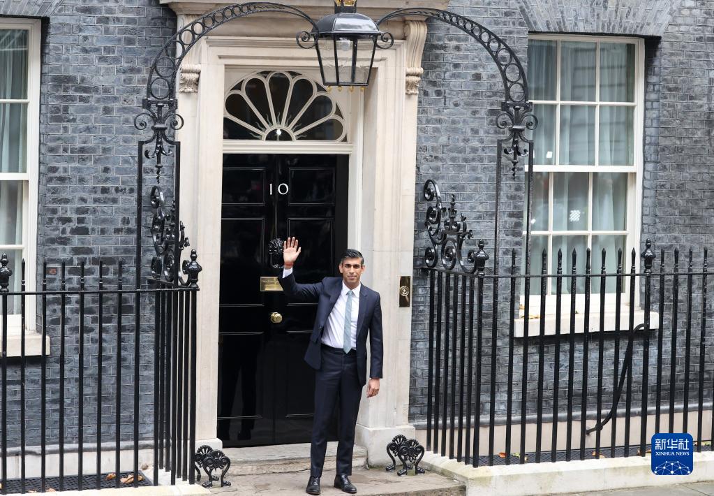 10月25日,新就任的英國首相里?!ぬK納克發(fā)表講話(huà)后在倫敦唐寧街10號首相府前揮手致意。
