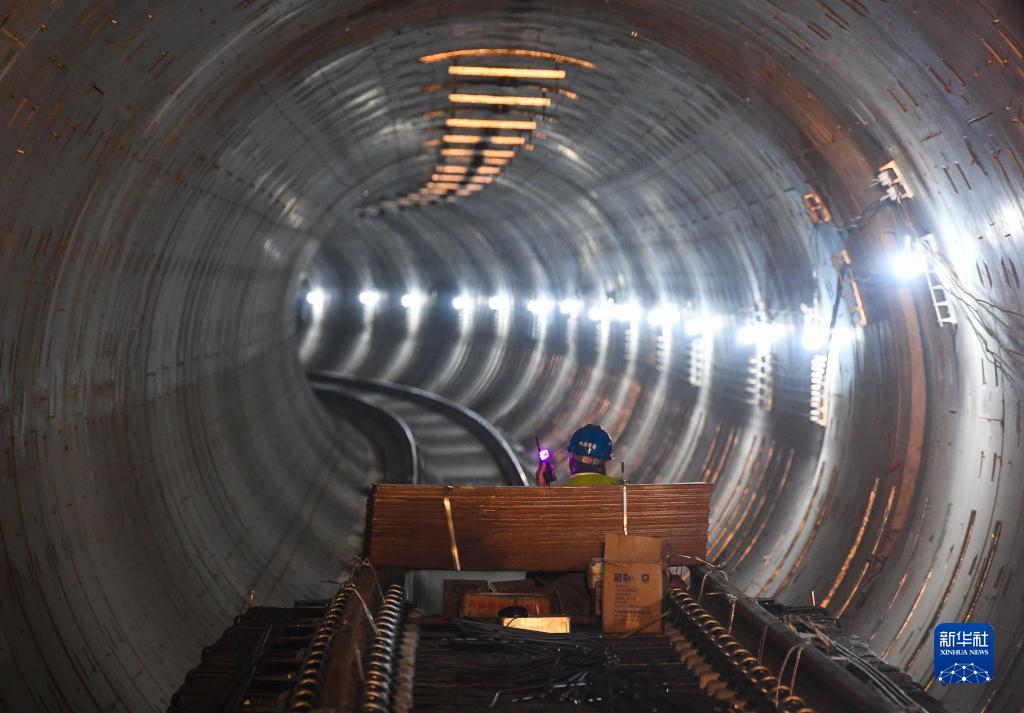 新華全媒+丨廣州首條環(huán)線(xiàn)地鐵鋪軌過(guò)江
