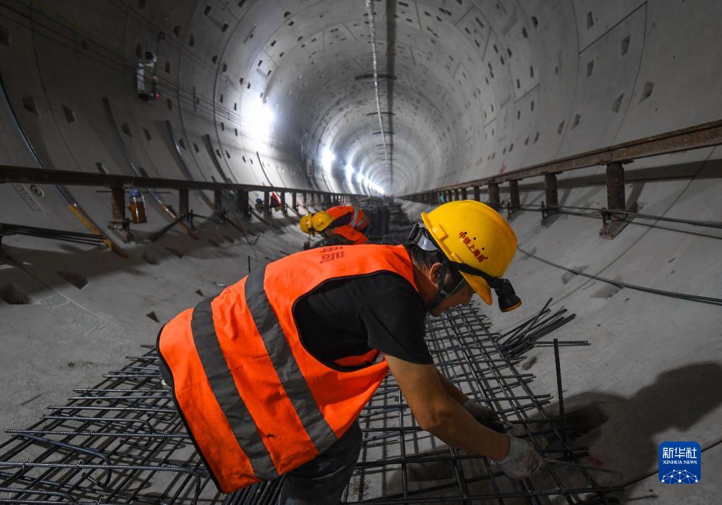 新華全媒+丨廣州首條環(huán)線(xiàn)地鐵鋪軌過(guò)江