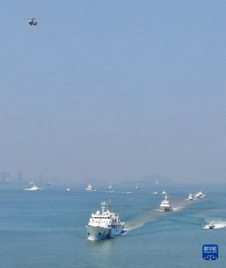 10月27日,參演搜救船只列隊行進(jìn)(無(wú)人機照片)。