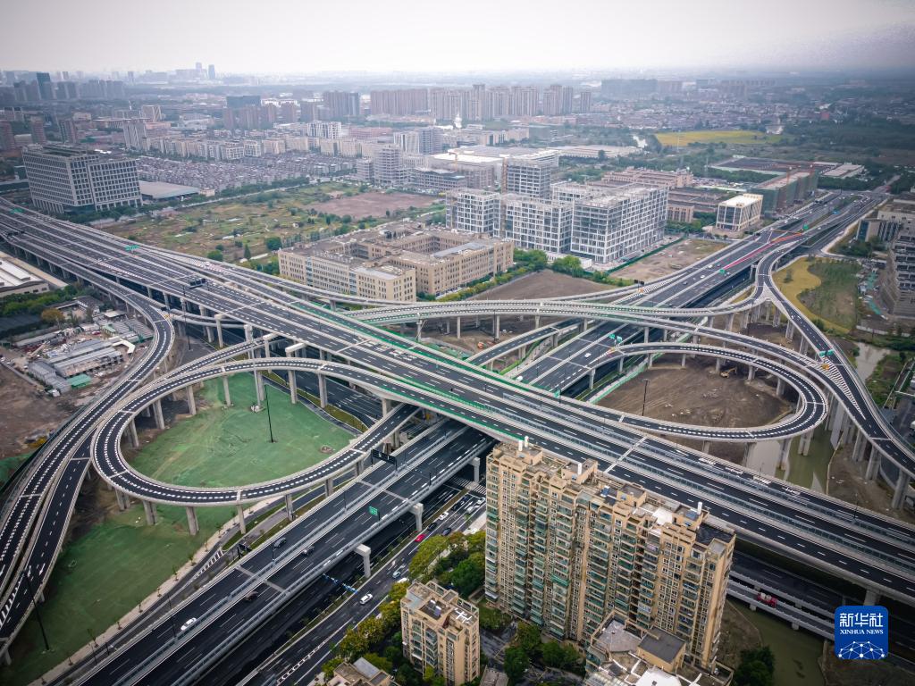 這是10月28日拍攝的杭州市臨平區320國道快速路二期東湖互通樞紐(無(wú)人機照片)。