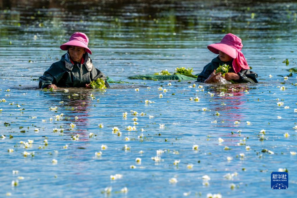海菜花對生存環(huán)境的水質(zhì)要求高,被視為“水質(zhì)風(fēng)向標”。在云南大理洱海,海菜花一度難覓蹤跡。如今,隨著(zhù)水質(zhì)逐漸恢復,海菜花不僅回到了洱海,還成為百姓增加收入的“致富菜”。海菜莖葉可食,甜糯清香的“海菜芋頭湯”是大理白族人家的特色美食。經(jīng)過(guò)數年發(fā)展,在大理白族自治州洱源縣右所鎮松曲村,1500多畝海菜田逐漸連片,年產(chǎn)值達1800多萬(wàn)元。