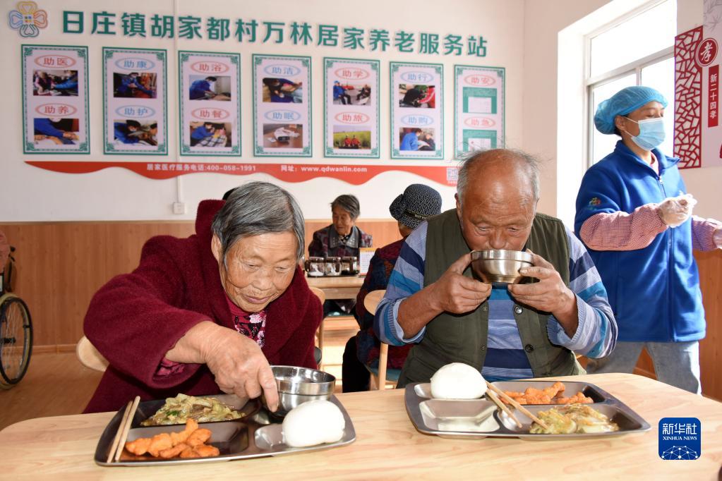 10月26日,在青島萊西市日莊鎮胡家都村萬(wàn)林居家養老服務(wù)站,村里的老人在集中用餐。