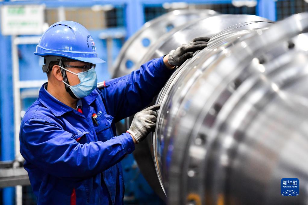 哈電集團哈爾濱汽輪機廠(chǎng)有限責任公司工人在生產(chǎn)車(chē)間作業(yè)(10月27日攝)。
