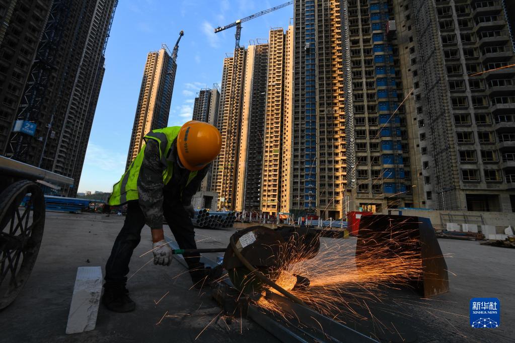 工人在華富村回遷安置房建設現場(chǎng)施工(10月20日攝)。