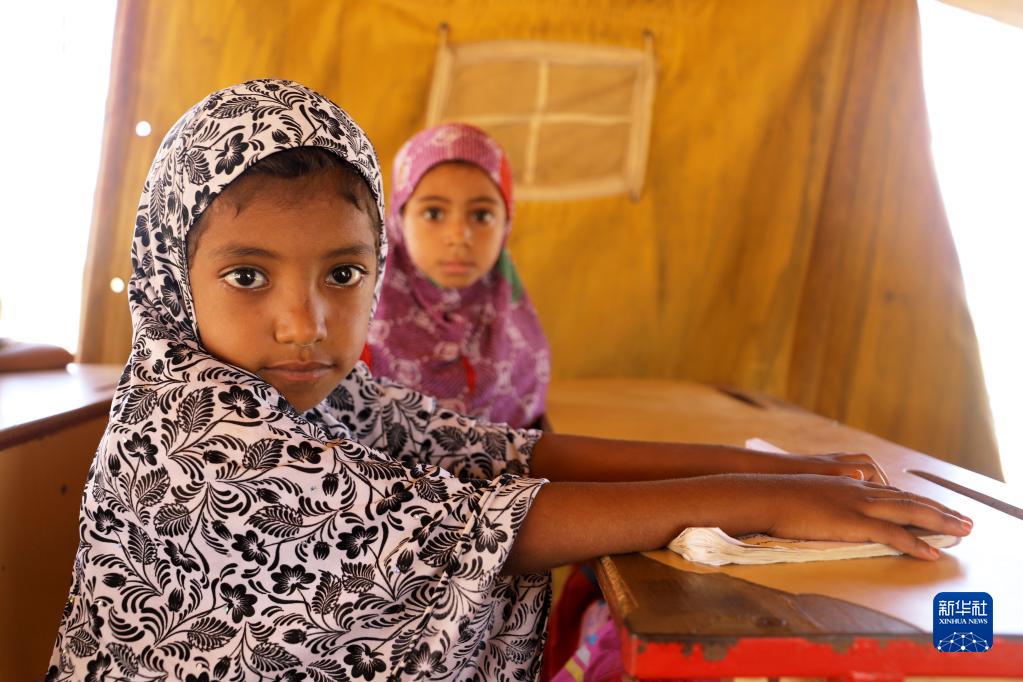 也門(mén)哈杰省一所學(xué)校的教室曾在戰火中被毀。在學(xué)生家長(cháng)的幫助下,該校的師生搭建了11座帳篷、草屋和木板房,并在這些臨時(shí)教室中繼續學(xué)業(yè)。