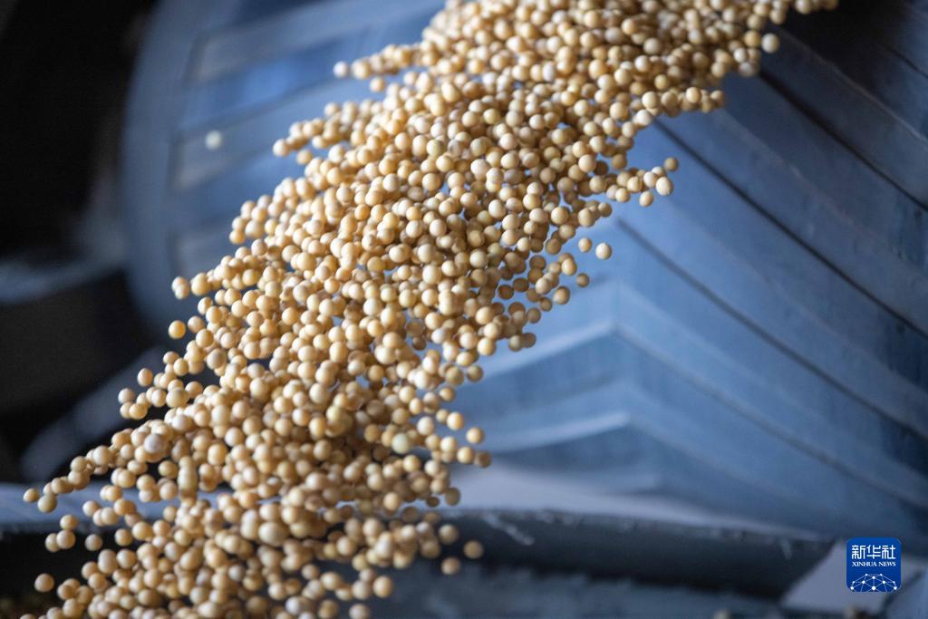 這是10月25日拍攝的綏化市益盛糧食購銷(xiāo)有限公司經(jīng)過(guò)篩選的大豆。