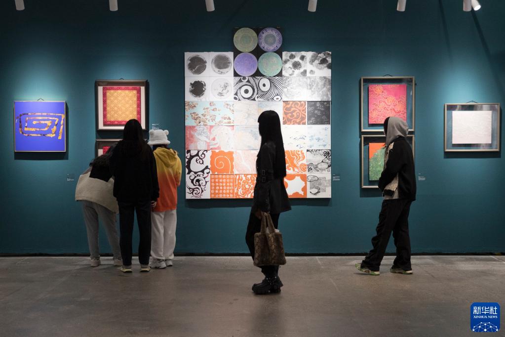 10月30日,參觀(guān)者在北京服裝學(xué)院觀(guān)看美術(shù)作品展。
