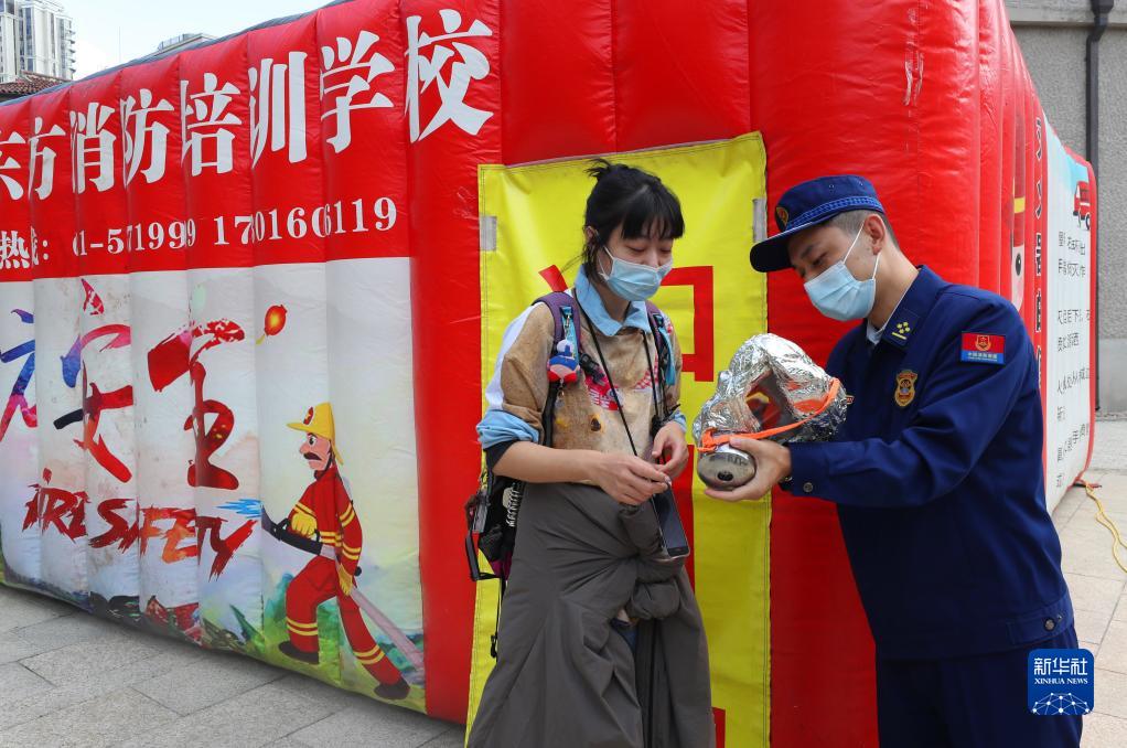 當日,2022年上海市長(cháng)寧區“119”消防宣傳月活動(dòng)正式啟動(dòng)。多功能消防勤務(wù)車(chē)、滅火機器人、救生艇和充氣千斤頂等消防設備在啟動(dòng)儀式上亮相,市民還在現場(chǎng)體驗使用滅火毯、滅火逃生瓶和防煙面罩等火場(chǎng)逃生自救工具。