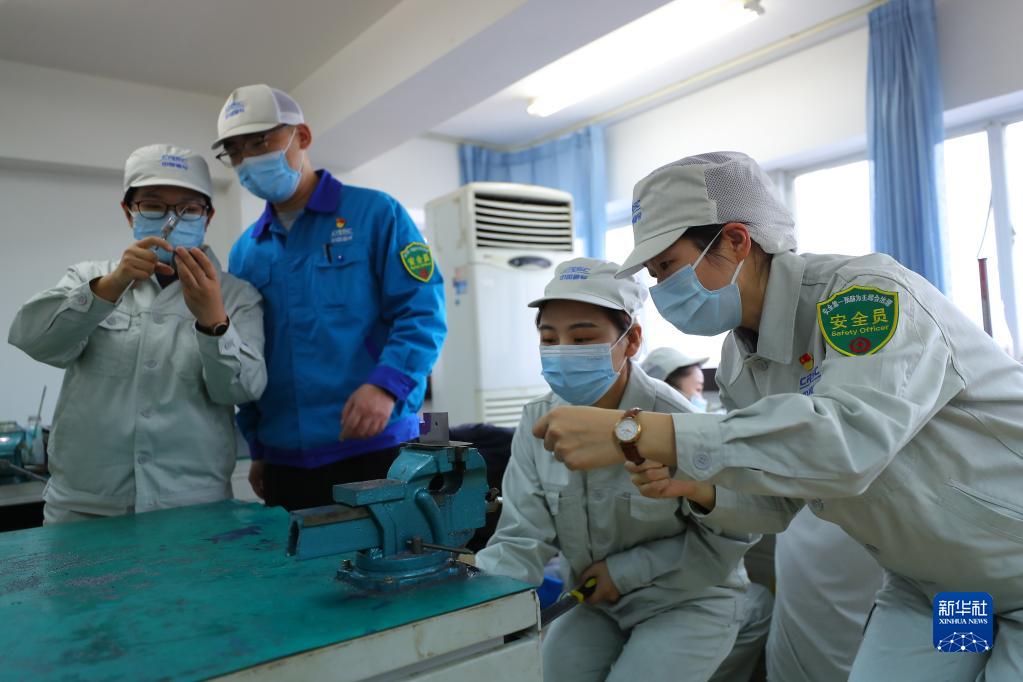 10月31日,柯曉賓(右一)在沈陽(yáng)鐵路信號有限責任公司柯曉賓勞模工作室練功房指導員工進(jìn)行信號鉗工訓練。