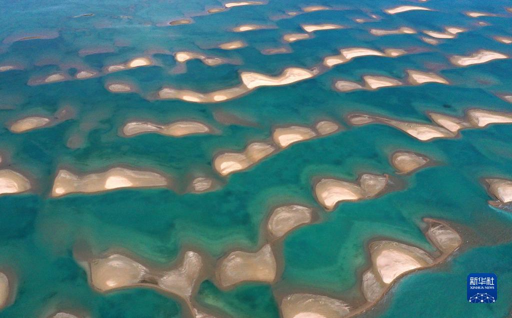 這是青海湖鳥(niǎo)島濕地一景(2020年7月10日攝,無(wú)人機照片)。