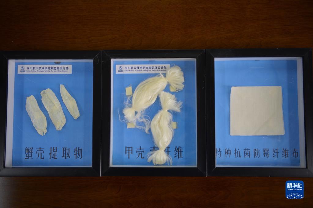 這是中國航天科技集團有限公司第七研究院第七設計部宇航團隊以蟹殼提取物為基礎,研制的特種抗菌防霉纖維布(10月19日攝)。