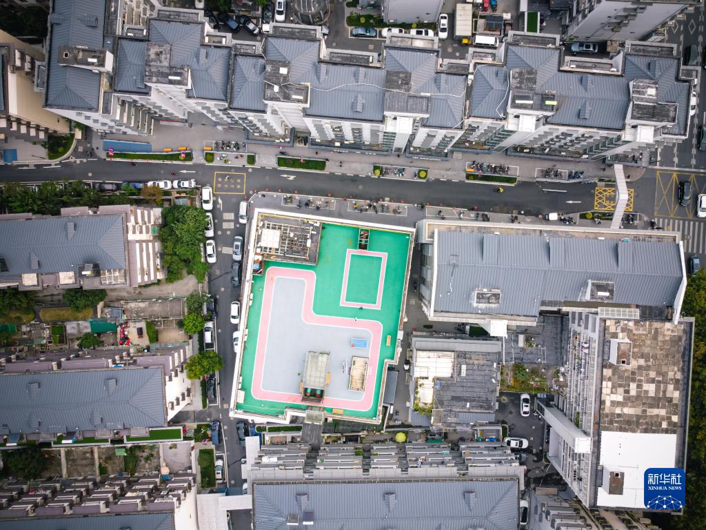 這是11月1日拍攝的北山街道松木場(chǎng)社區利用屋頂空間改造成的運動(dòng)場(chǎng)地(無(wú)人機照片)。