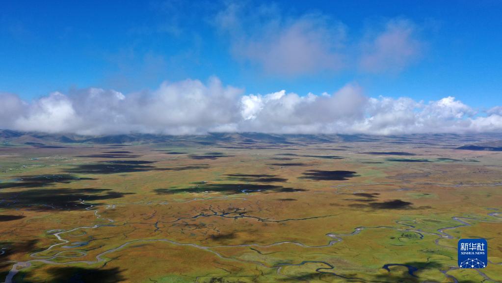 這是瑪曲縣阿萬(wàn)倉濕地秋景(2022年9月21日攝,無(wú)人機照片)。