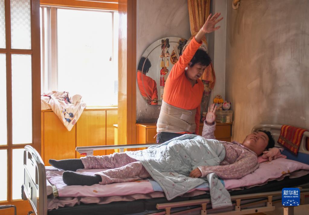 胡燕均幫助女兒進(jìn)行康復訓練(11月1日攝)。