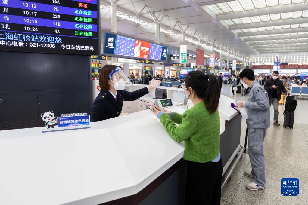 第五屆中國國際進(jìn)口博覽會(huì )開(kāi)幕在即,上海虹橋火車(chē)站在站廳內增添進(jìn)博元素裝置,設立進(jìn)博志愿者和進(jìn)博服務(wù)窗口,并在出站口提供進(jìn)博直通車(chē),做好進(jìn)博服務(wù)準備工作。