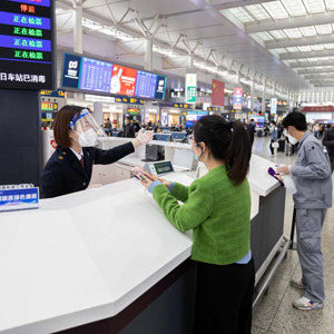 11月2日,上海虹橋火車(chē)站服務(wù)臺工作人員解答問(wèn)詢(xún)。