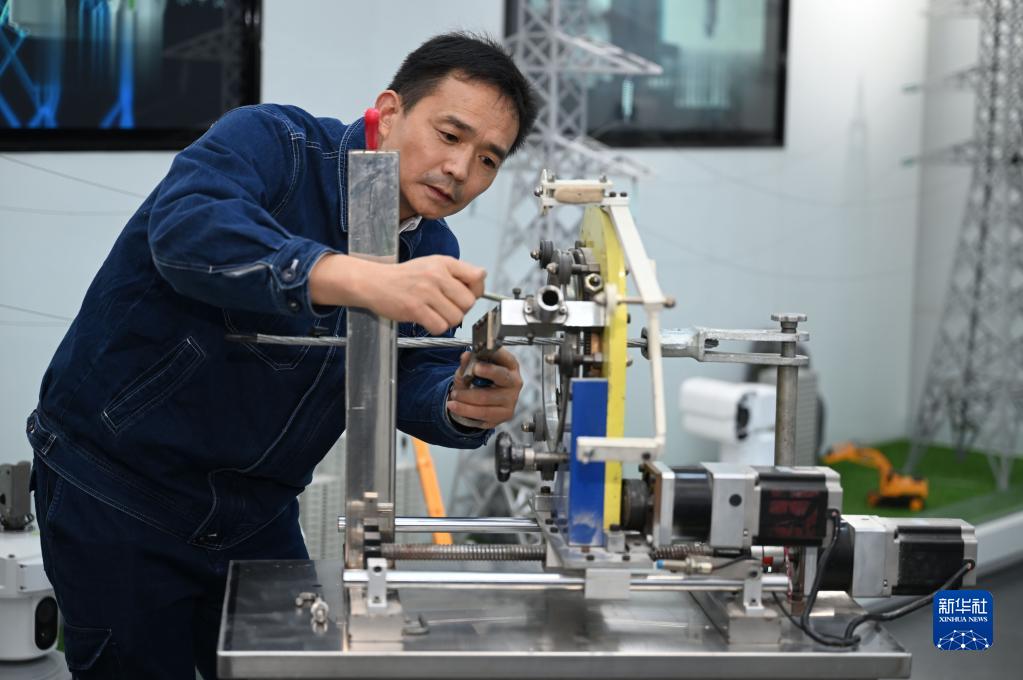 11月2日,廖志斌在國網(wǎng)安徽省電力有限公司宿州供電公司研發(fā)輸電線(xiàn)路運檢工具。