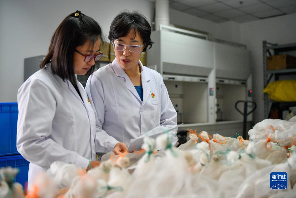 11月2日,在天津市農業(yè)科學(xué)院農作物研究所,時(shí)曉偉(右)與課題組同事工作交流。