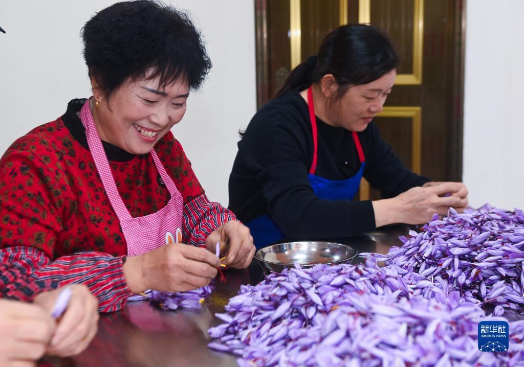 從11月初開(kāi)始,浙江省建德市三都鎮圣江村迎來(lái)西紅花豐收的時(shí)節。三都鎮目前西紅花種植面積2000多畝,種植戶(hù)數近500余戶(hù),花絲平均年產(chǎn)量約2900公斤,成為助力當地農戶(hù)致富增收和共同富裕的重要產(chǎn)業(yè)。