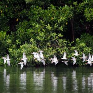 在“花園城市”新加坡西北部,有一片廣闊蔥郁的紅樹(shù)林與林立的摩天高樓遙相呼應,這里就是新加坡的首座東盟遺產(chǎn)公園——雙溪布洛濕地保護區。這里是水巨蜥、鱷魚(yú)等多種生物的自然棲息地。每年9月至次年3月,成群從西伯利亞飛往澳大利亞的候鳥(niǎo)在此停留,吸引眾多觀(guān)鳥(niǎo)愛(ài)好者前來(lái)觀(guān)賞。雙溪布洛濕地保護區豐富的生態(tài)為動(dòng)植物提供了生長(cháng)繁衍的空間,美麗的紅樹(shù)林景觀(guān)成為城市居民親近自然的“心靈棲息地”。
