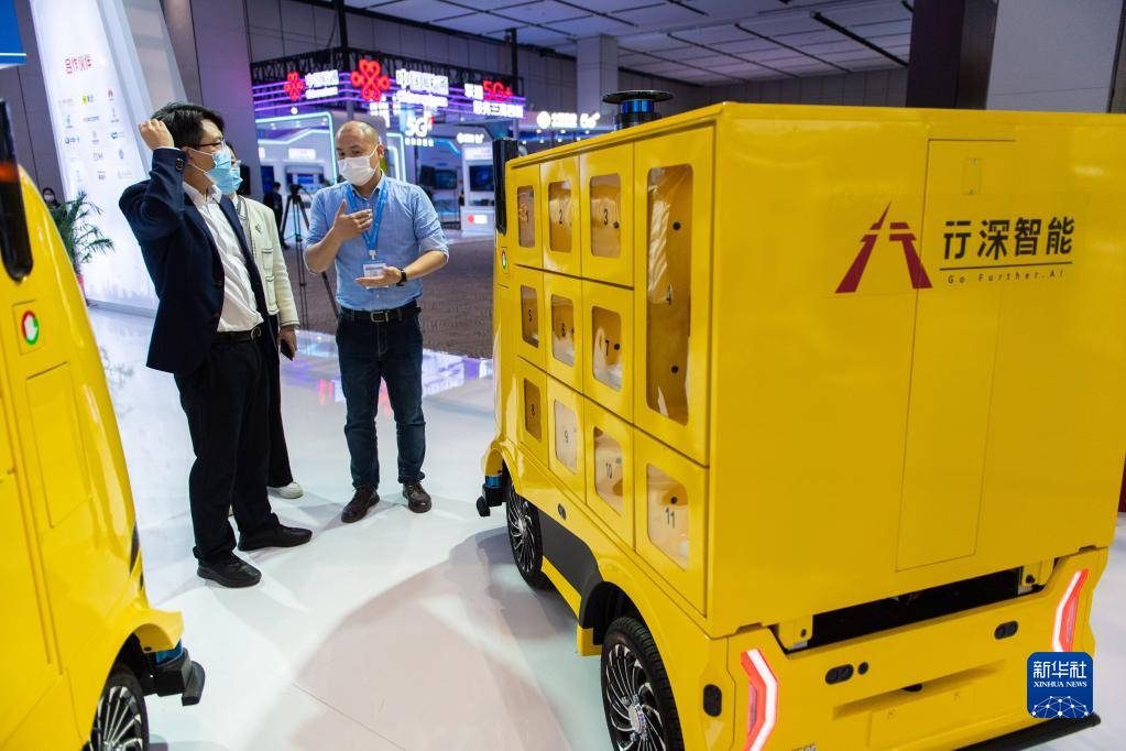 11月4日,工作人員(右)在2022世界計算大會(huì )成果展上向觀(guān)眾介紹無(wú)人車(chē)。