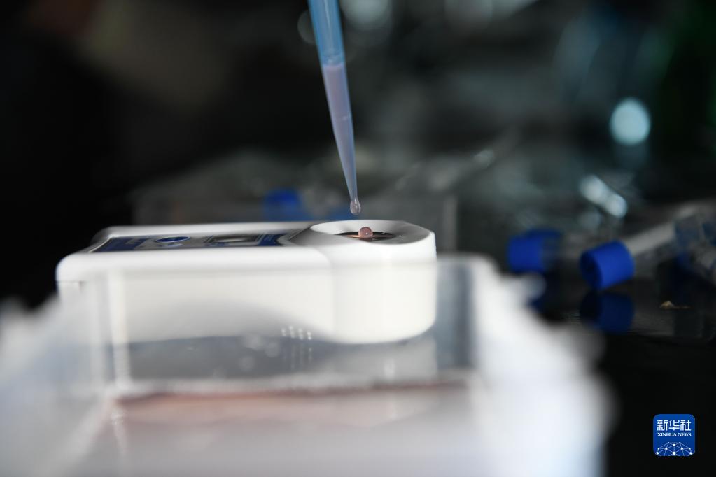 11月3日,在安徽省農業(yè)科學(xué)院園藝研究所實(shí)驗室內,石榴創(chuàng )新團隊成員在測量石榴汁里的可溶性固形物。