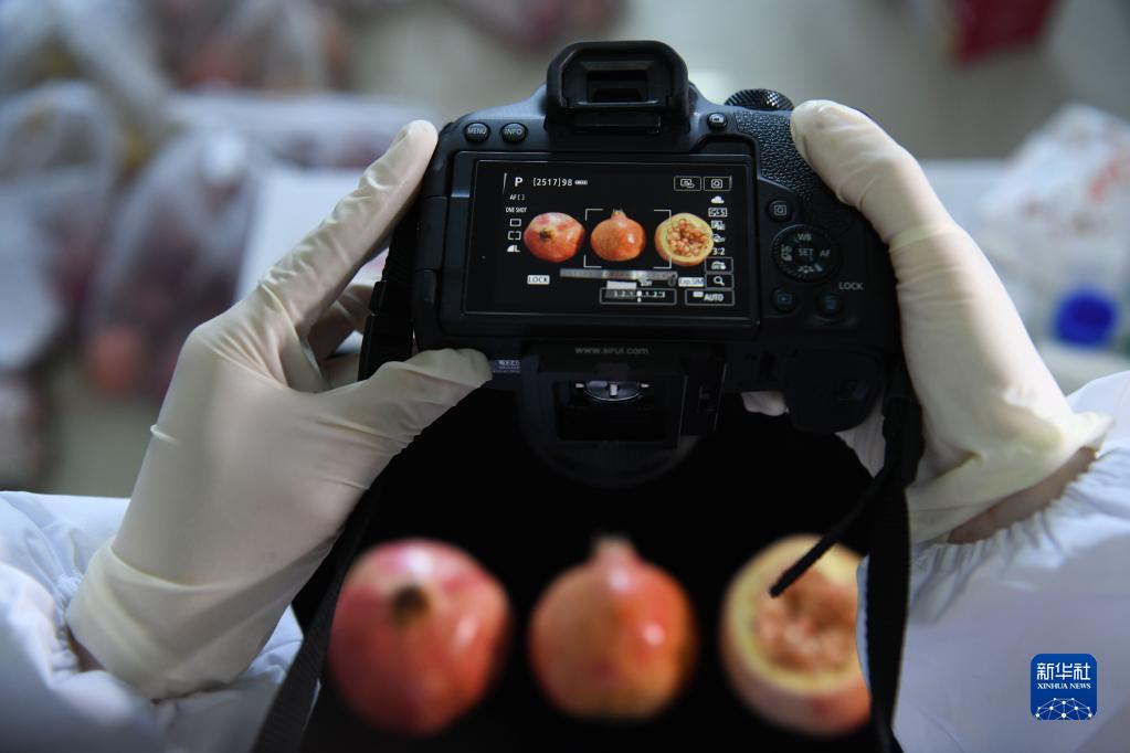 11月3日,在安徽省農業(yè)科學(xué)院園藝研究所實(shí)驗室內,石榴創(chuàng )新團隊成員曹榛在給石榴拍照。
