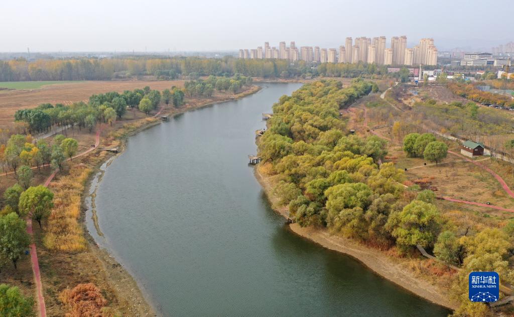 這是11月2日拍攝的天津薊州州河國家濕地公園一景(無(wú)人機照片)。