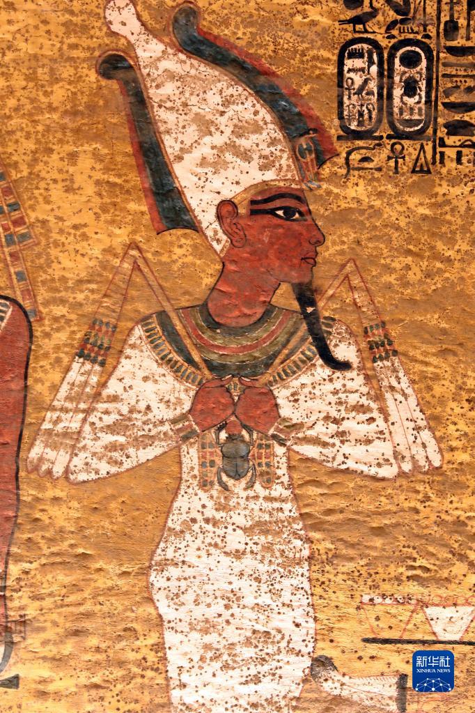這是11月4日在位于埃及盧克索帝王谷的圖坦卡蒙墓內拍攝的壁畫(huà)。