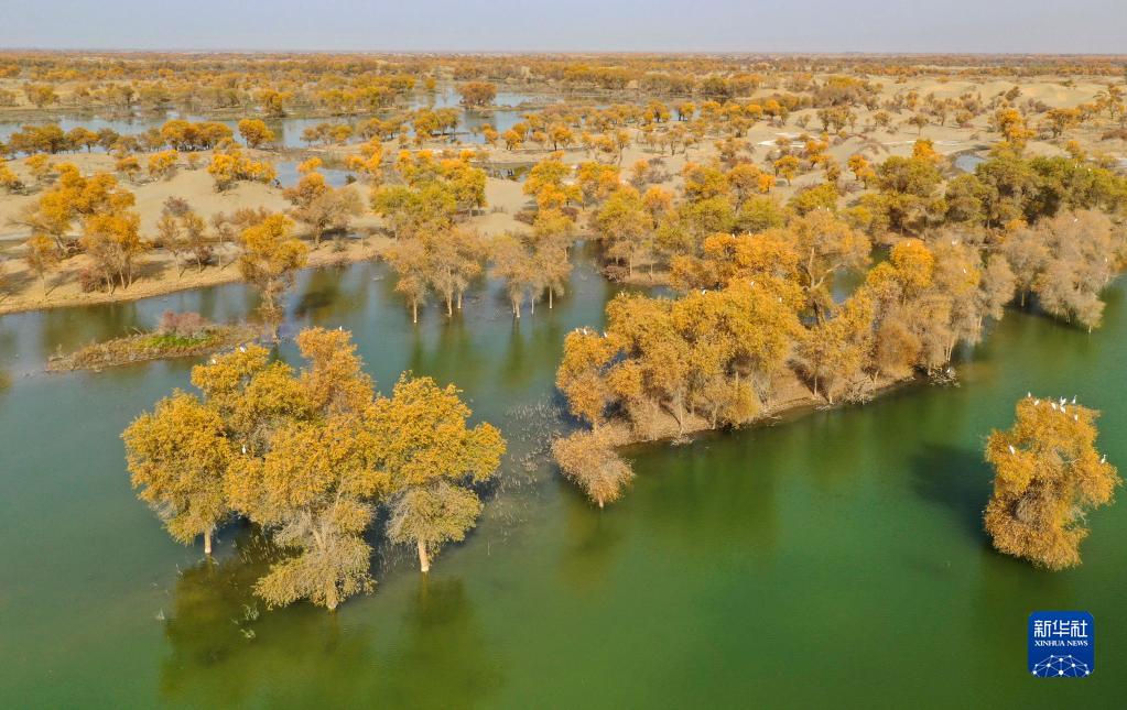 新疆尉犁縣羅布淖爾國家濕地公園秋景(2022年10月31日攝,無(wú)人機照片)。