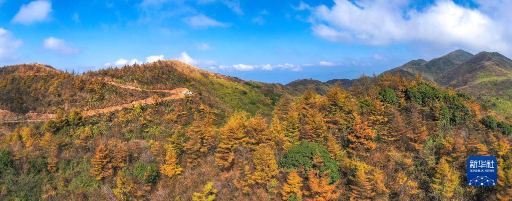 這是11月1日在湖南省湘西土家族苗族自治州龍山縣大安鄉萬(wàn)寶山林場(chǎng)拍攝的秋景(無(wú)人機照片)。 新華社發(fā)(曾祥輝 攝)