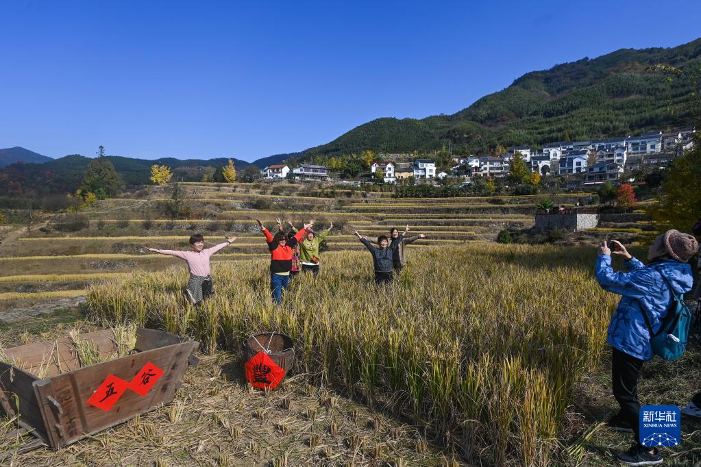 11月5日,游客在指南村的梯田里拍照。