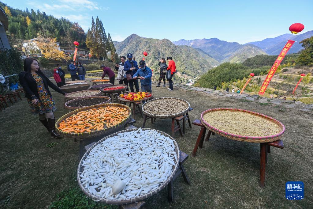 11月5日,游客在指南村觀(guān)賞曬秋的農作物。