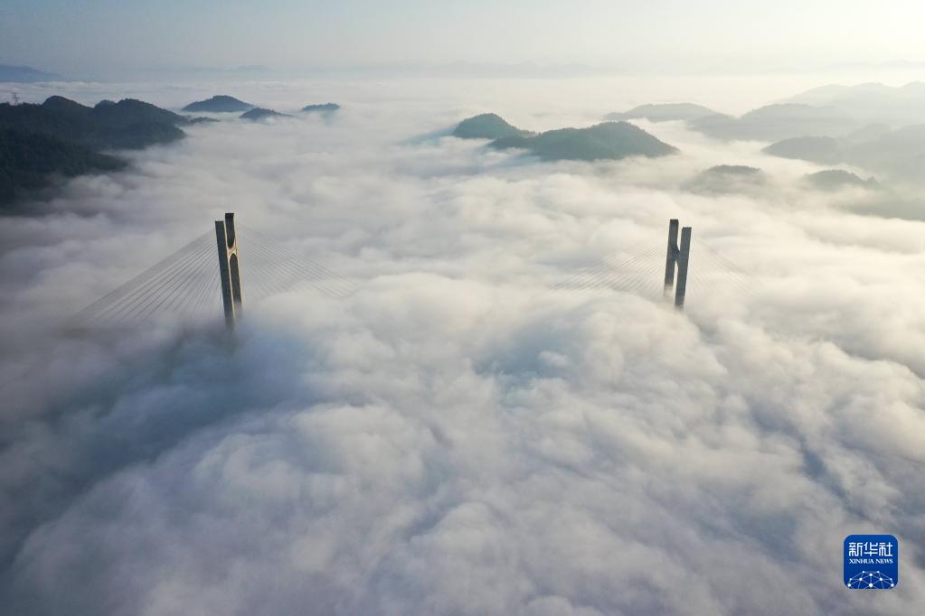 這是湖北省恩施土家族苗族自治州宣恩縣境內的貢水河特大橋(11月2日攝,無(wú)人機照片)。