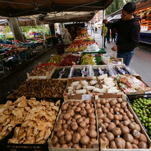 11月4日,顧客在比利時(shí)布魯塞爾一市場(chǎng)選購商品。