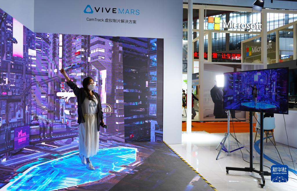 11月5日,參觀(guān)者在第五屆進(jìn)博會(huì )技術(shù)裝備展區人工智能專(zhuān)區體驗虛擬制片解決方案。
