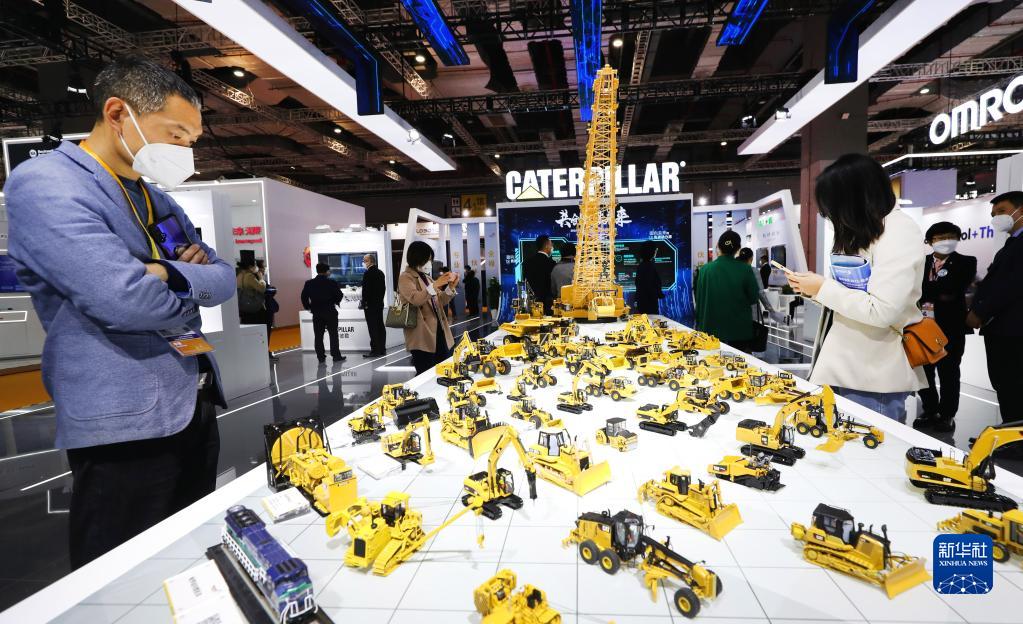 11月5日,參觀(guān)者在第五屆進(jìn)博會(huì )技術(shù)裝備展區參觀(guān)工程機械模型。