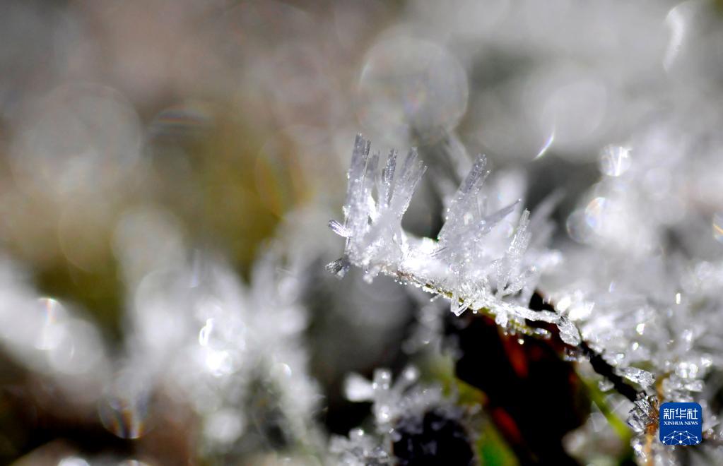 10月30日,在云南省迪慶藏族自治州香格里拉市建塘鎮,植物結冰花。