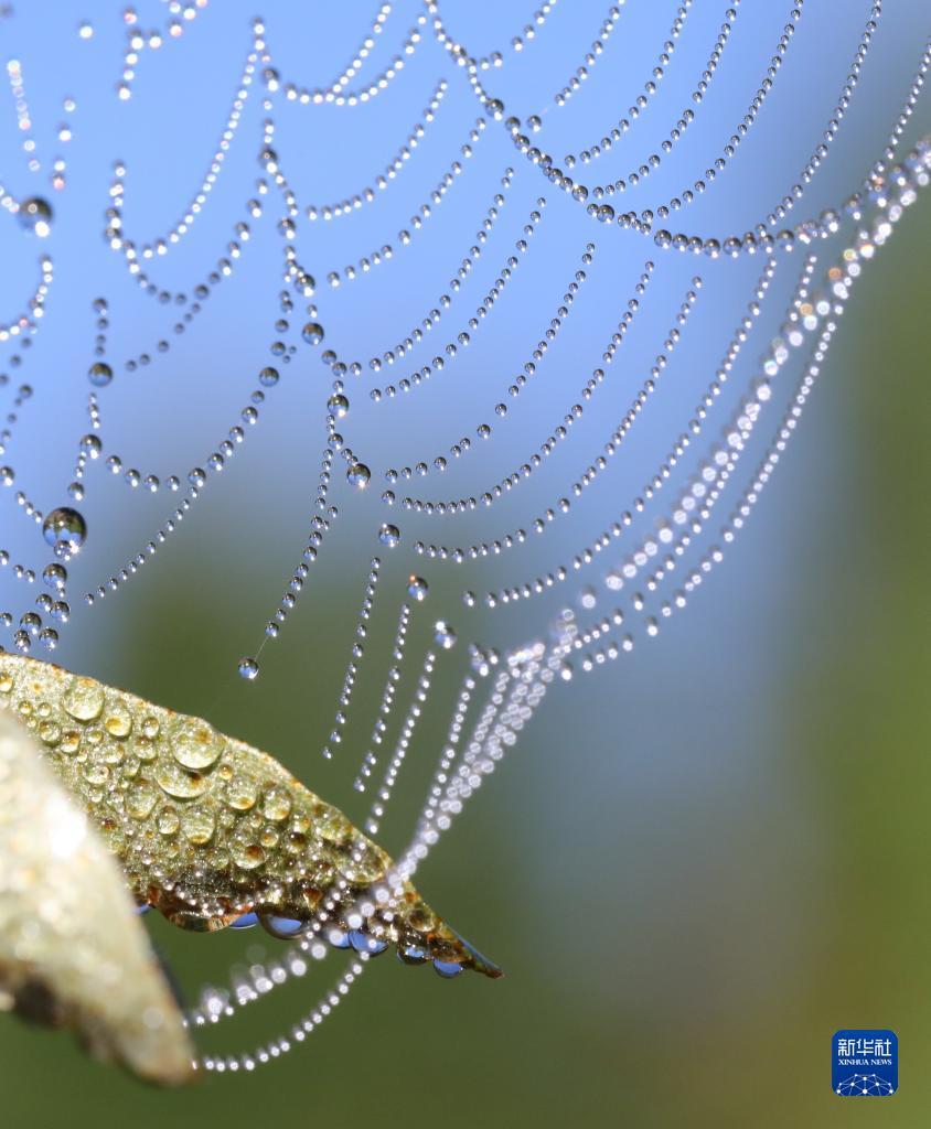 這是10月30日在云南省騰沖市火山地熱國家地質(zhì)公園拍攝的蛛網(wǎng)。