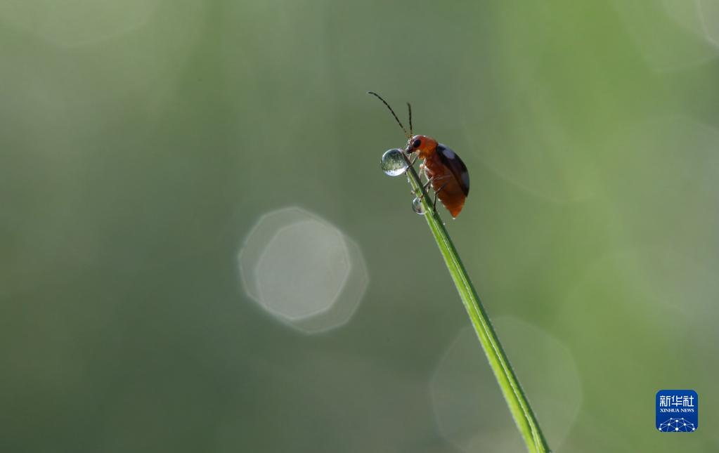 10月30日,在云南省景洪市,昆蟲(chóng)爬上草尖。