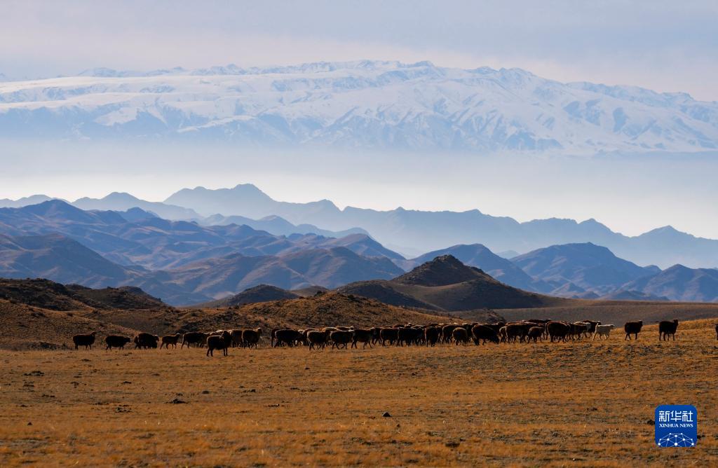 新疆裕民縣巴爾魯克山冬季牧場(chǎng)牧歌圖景(11月4日攝)。