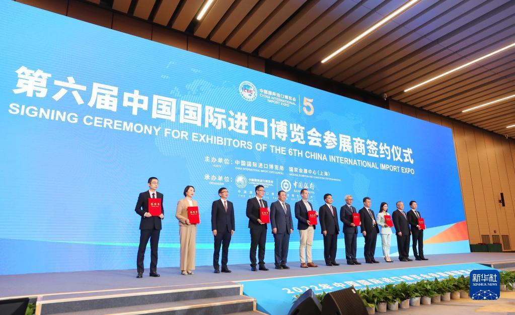 11月6日,2022年中國國際進(jìn)口博覽會(huì )參展商聯(lián)盟大會(huì )在上海舉行。這是在大會(huì )期間進(jìn)行的第六屆進(jìn)博會(huì )參展商簽約儀式。