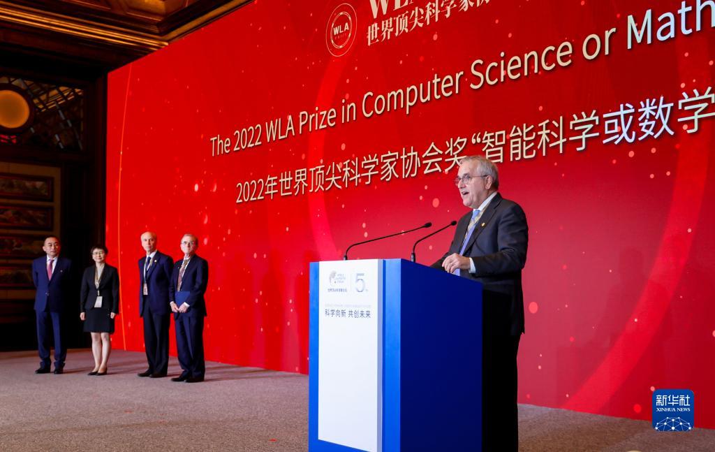 11月6日,2022年世界頂尖科學(xué)家協(xié)會(huì )獎“智能科學(xué)或數學(xué)獎”得主、美國計算機科學(xué)與統計學(xué)家邁克爾·I·喬丹(右一)在頒獎典禮上致辭。